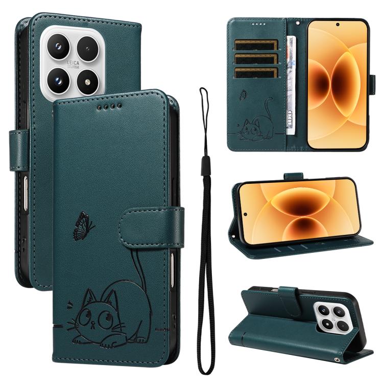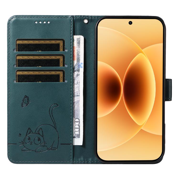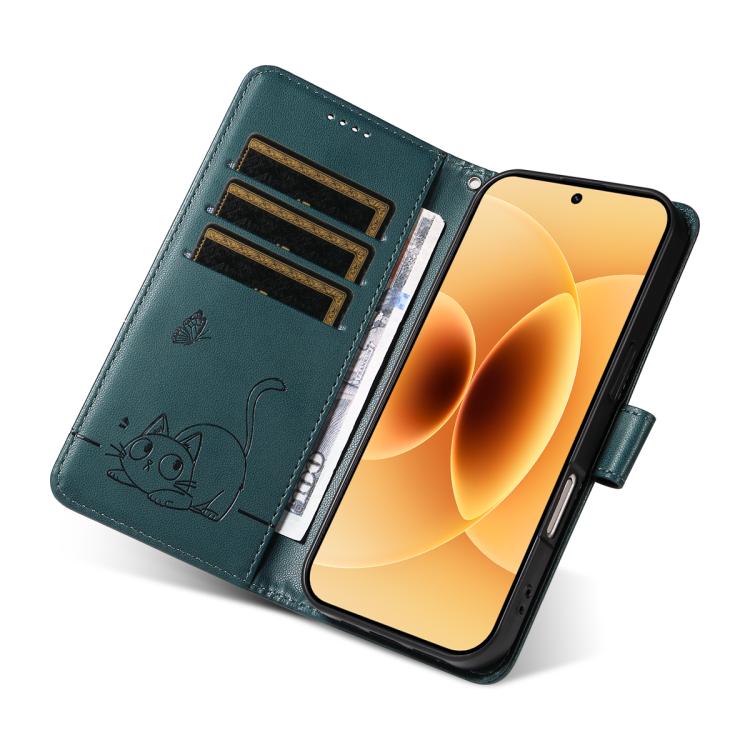 For Xiaomi 17 Adorable Cat Embossed Pattern Flip Leather Phone Case(Dark Green)