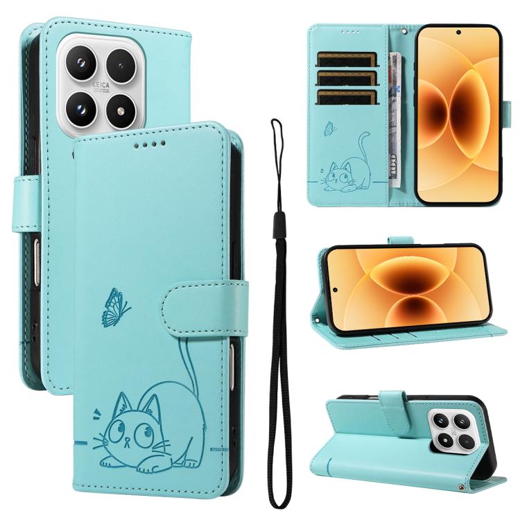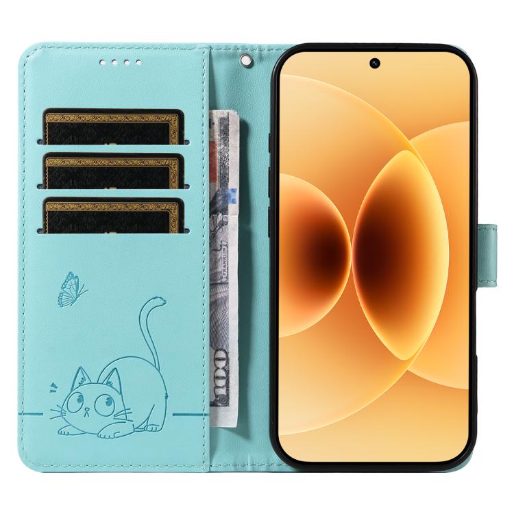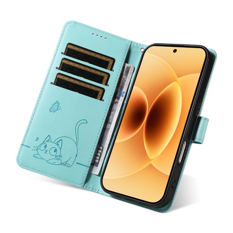 For Xiaomi 17 Adorable Cat Embossed Pattern Flip Leather Phone Case(Green)