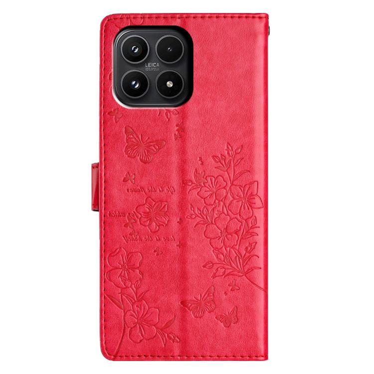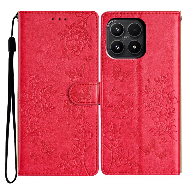 For Xiaomi 17 Butterflies and Flowers Leather Phone Case(Red)