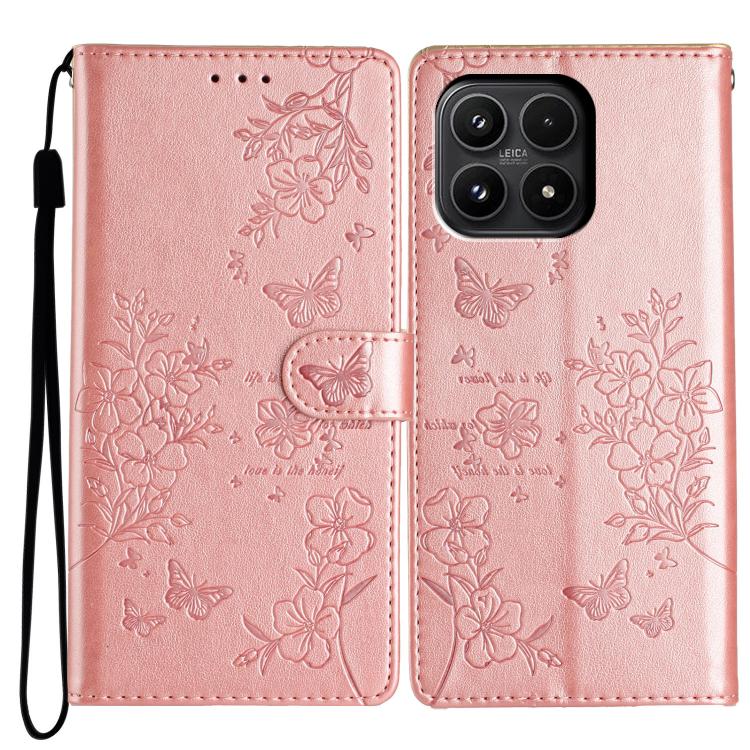 For Xiaomi 17 Butterflies and Flowers Leather Phone Case(Rose Gold)