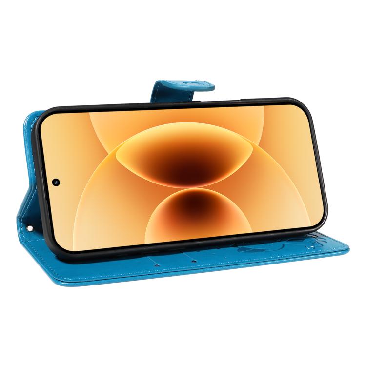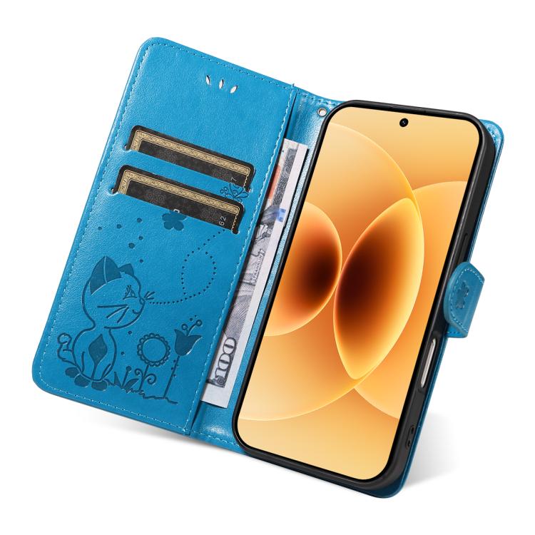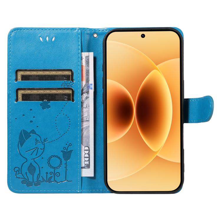 For Xiaomi 17 Cat and Bee Embossed Flip Leather Phone Case(Blue)