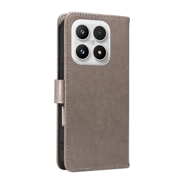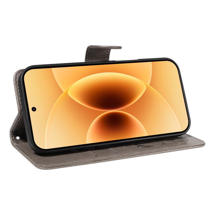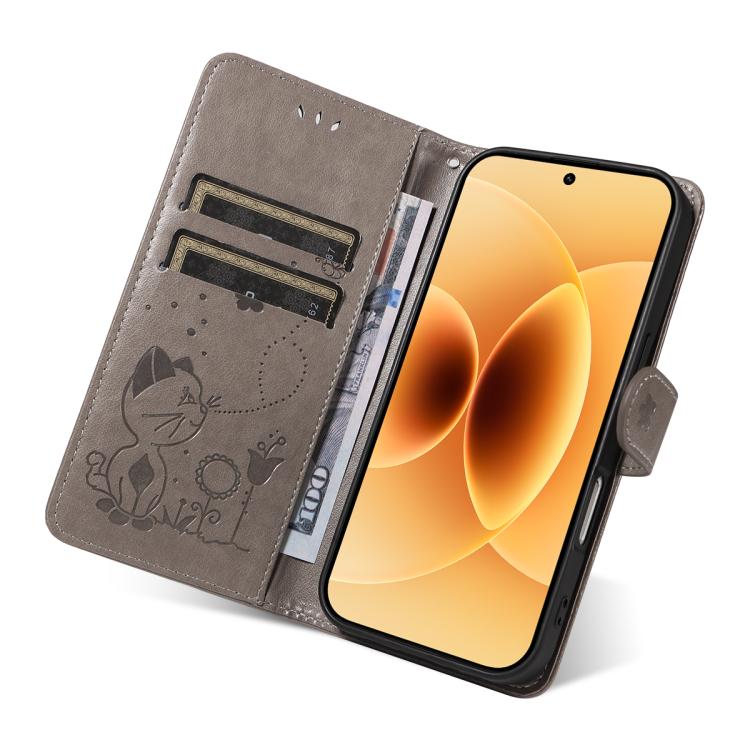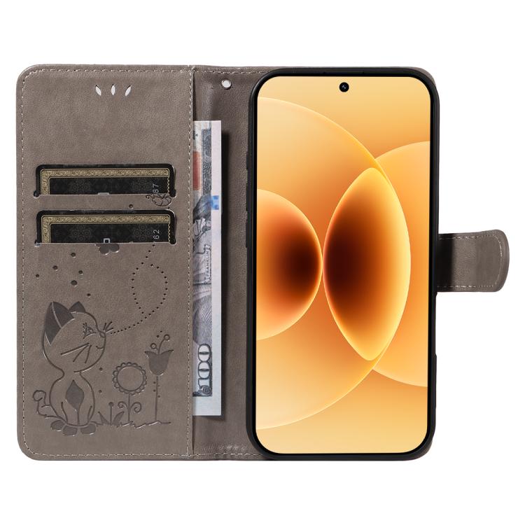 For Xiaomi 17 Cat and Bee Embossed Flip Leather Phone Case(Grey)