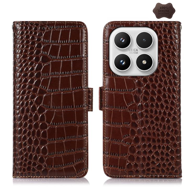 For Xiaomi 17 Crocodile Top Layer Cowhide Leather Phone Case(Brown)