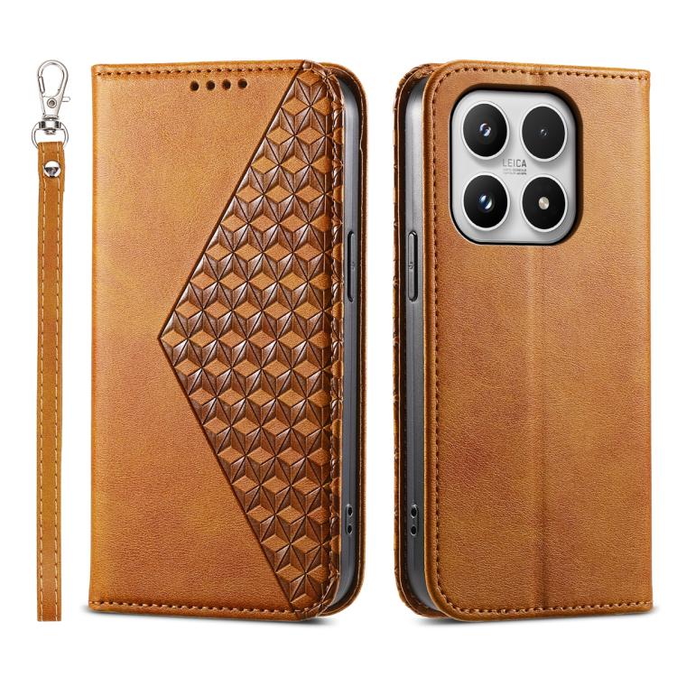 For Xiaomi 17 Cubic Grid Calf Texture Magnetic Leather Phone Case(Yellow)