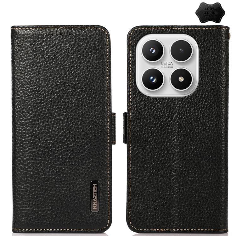 For Xiaomi 17 KHAZNEH Side-Magnetic Litchi Genuine Leather RFID Phone Case(Black)