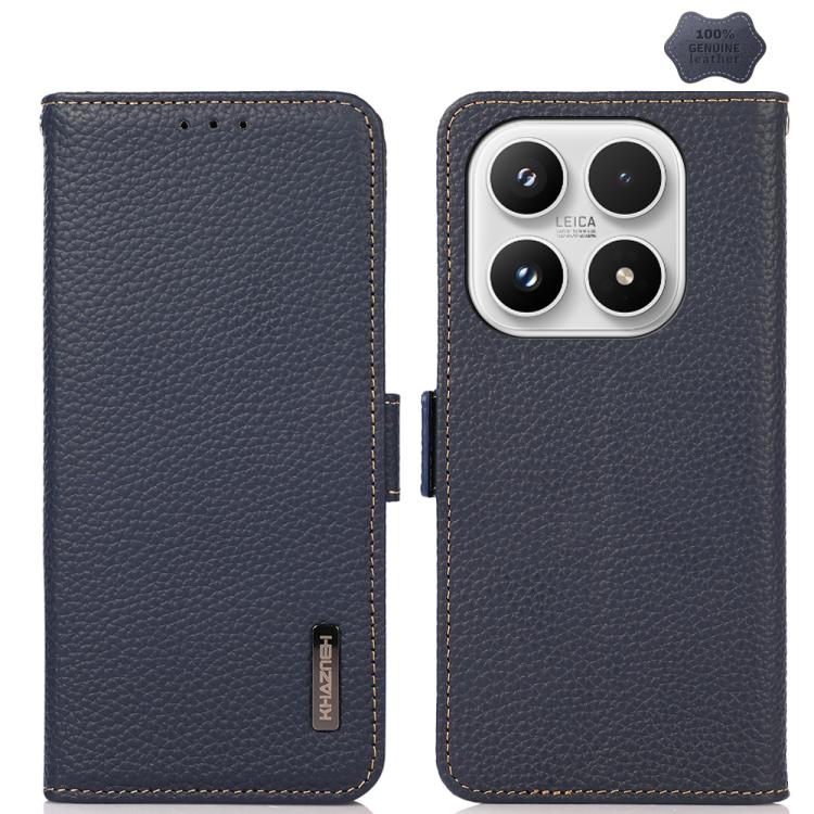For Xiaomi 17 KHAZNEH Side-Magnetic Litchi Genuine Leather RFID Phone Case(Blue)