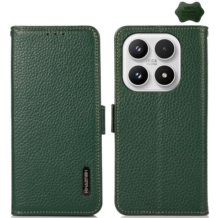 For Xiaomi 17 KHAZNEH Side-Magnetic Litchi Genuine Leather RFID Phone Case(Green)