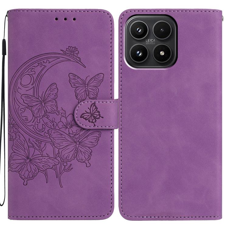 For Xiaomi 17 Moonlit Butterfly Dance Pattern Embossed Leather Phone Case(Purple)