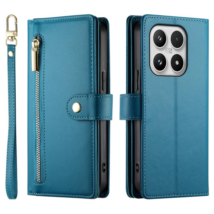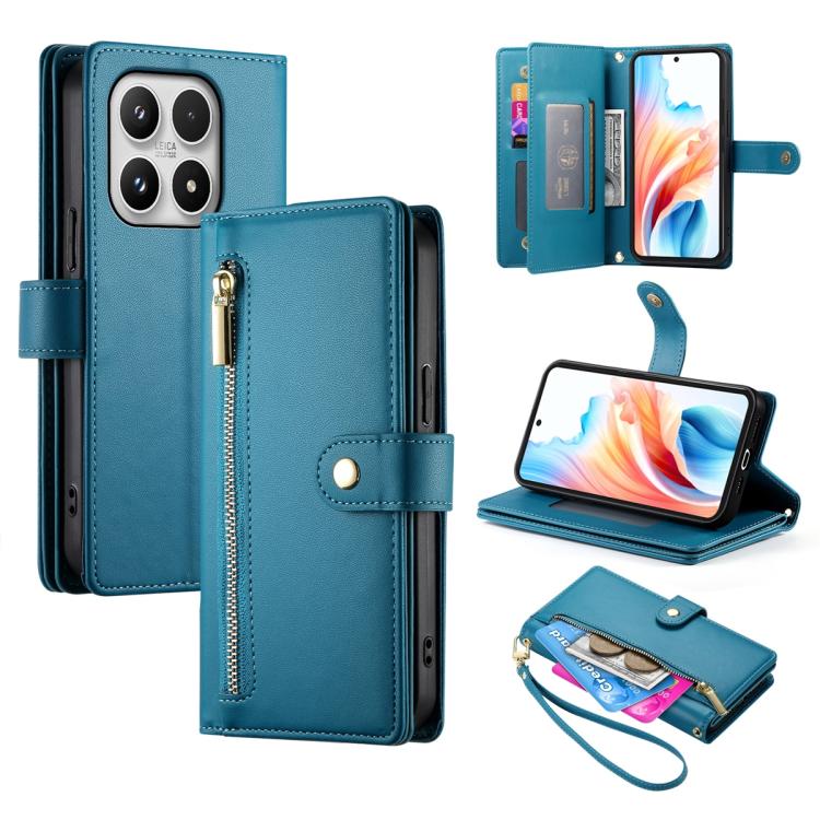 For Xiaomi 17 Nine Card-slot Zipper Wallet Bag Leather Phone Case(Blue)