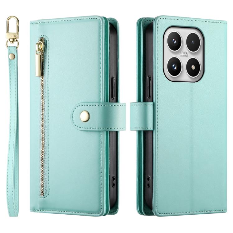 For Xiaomi 17 Nine Card-slot Zipper Wallet Bag Leather Phone Case(Mint Green)