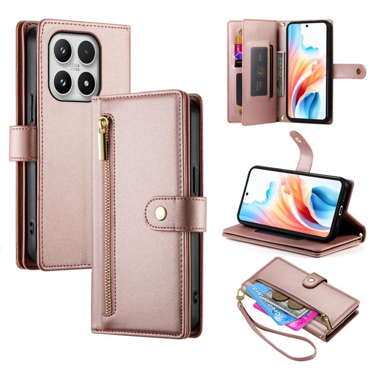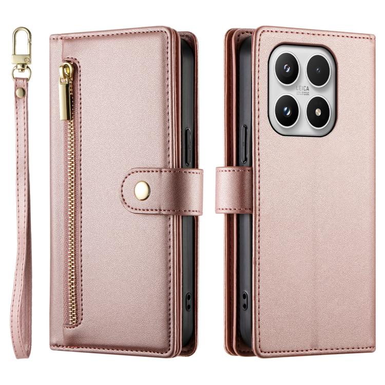 For Xiaomi 17 Nine Card-slot Zipper Wallet Bag Leather Phone Case(Pink)