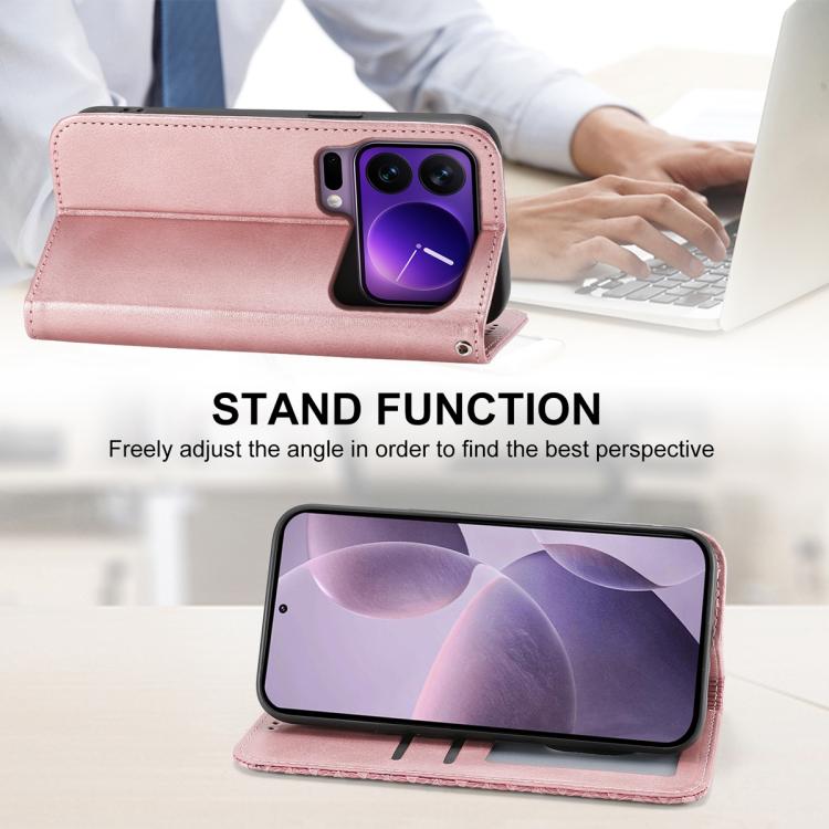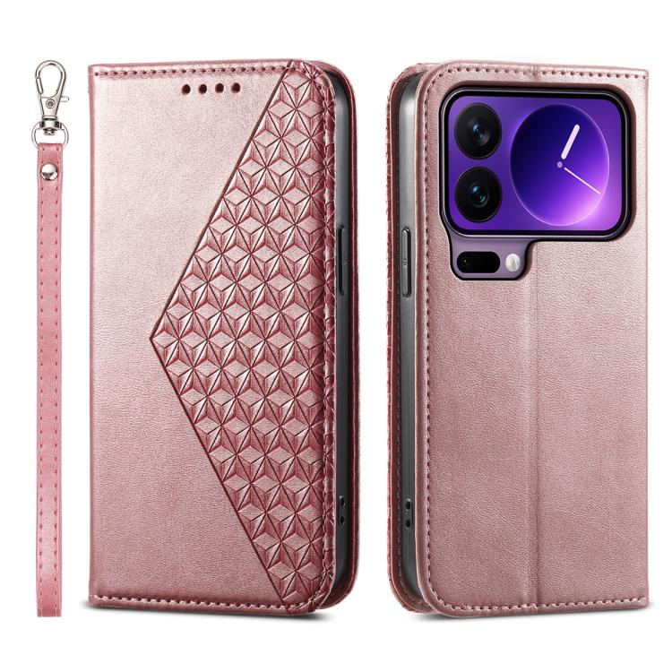 For Xiaomi 17 Pro Cubic Grid Calf Texture Magnetic Leather Phone Case(Rose Gold)