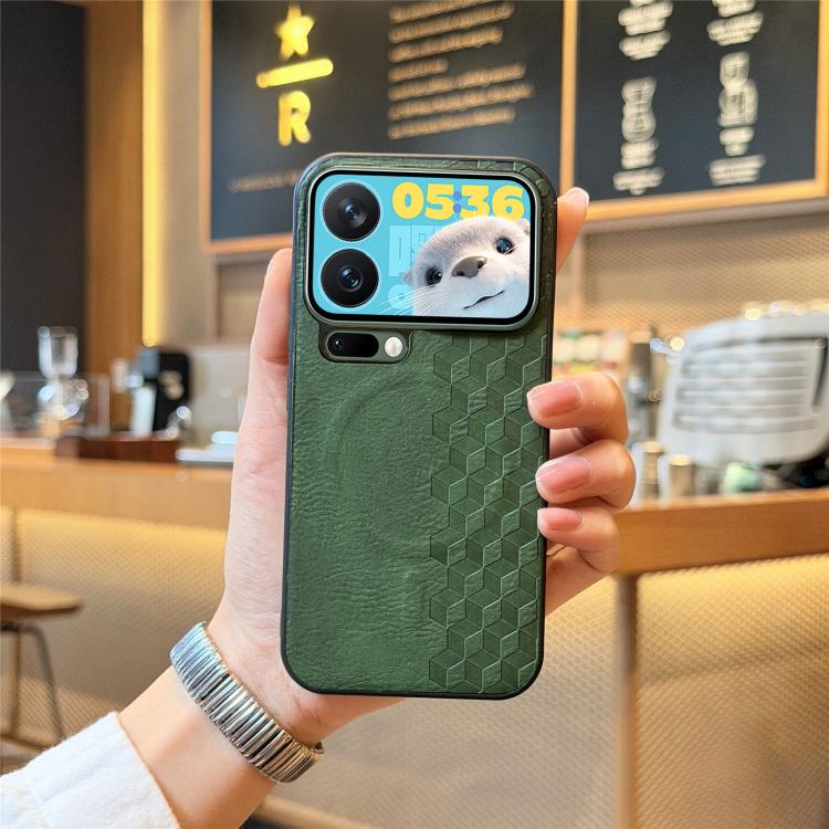 For Xiaomi 17 Pro Max 3D Cubic Grid Pressed Magnetic PU Back Cover Phone Case(Green)