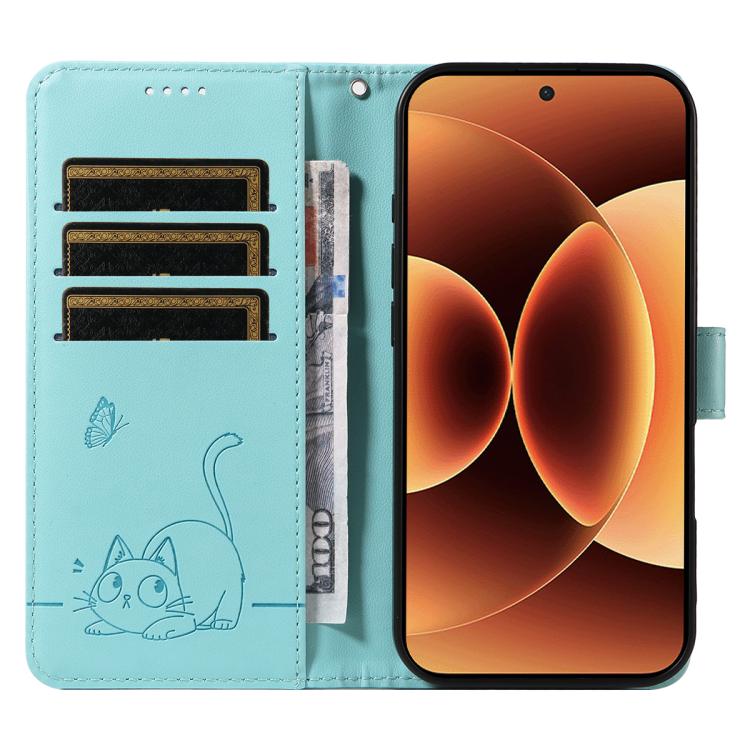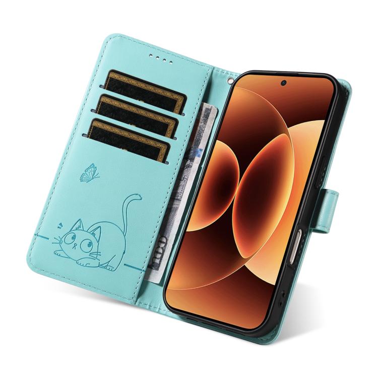 For Xiaomi 17 Pro Max Adorable Cat Embossed Pattern Flip Leather Phone Case(Green)