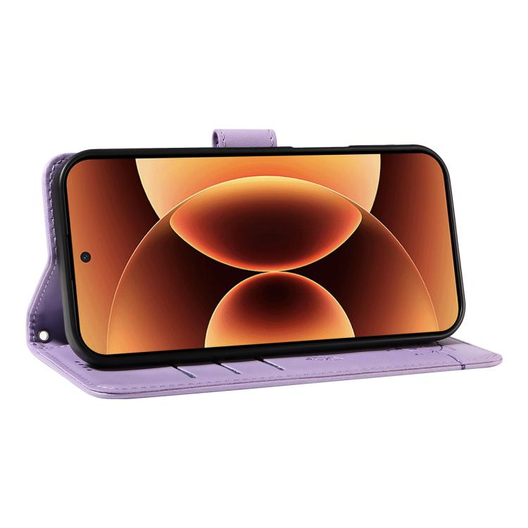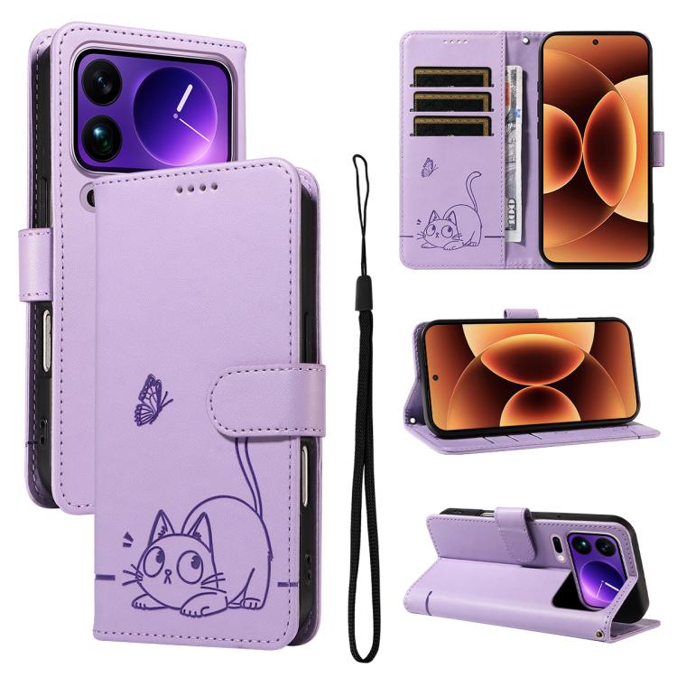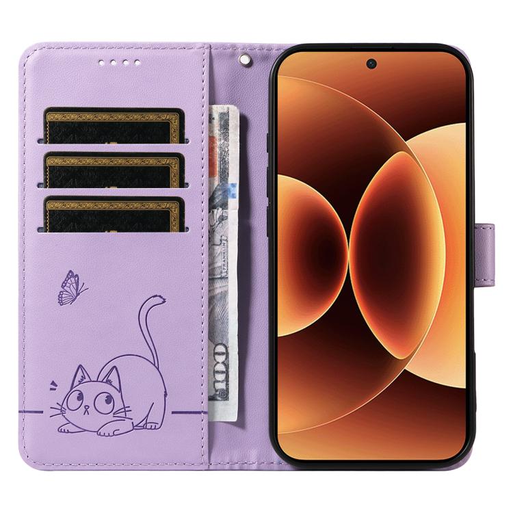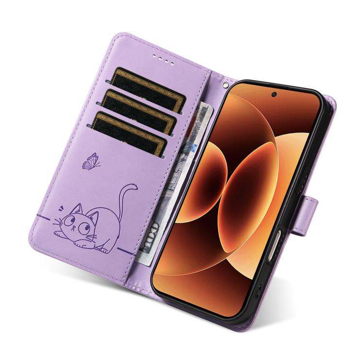For Xiaomi 17 Pro Max Adorable Cat Embossed Pattern Flip Leather Phone Case(Purple)