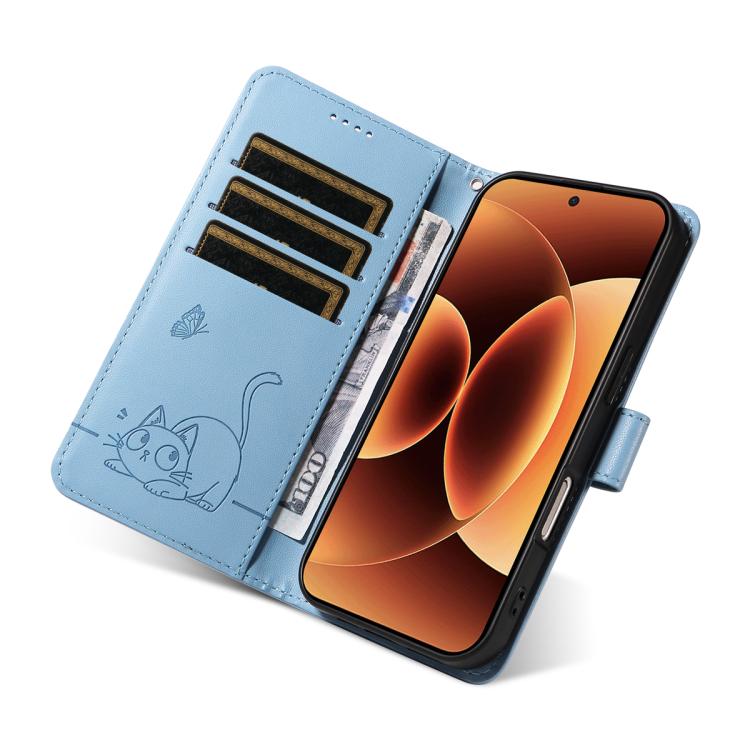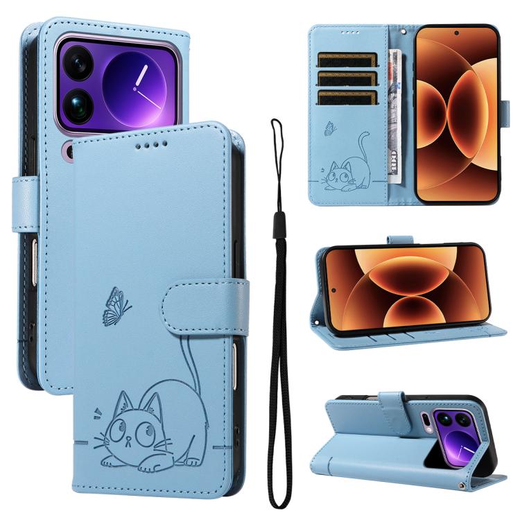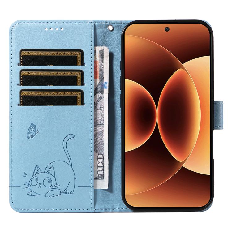 For Xiaomi 17 Pro Max Adorable Cat Embossed Pattern Flip Leather Phone Case(Sky Blue)