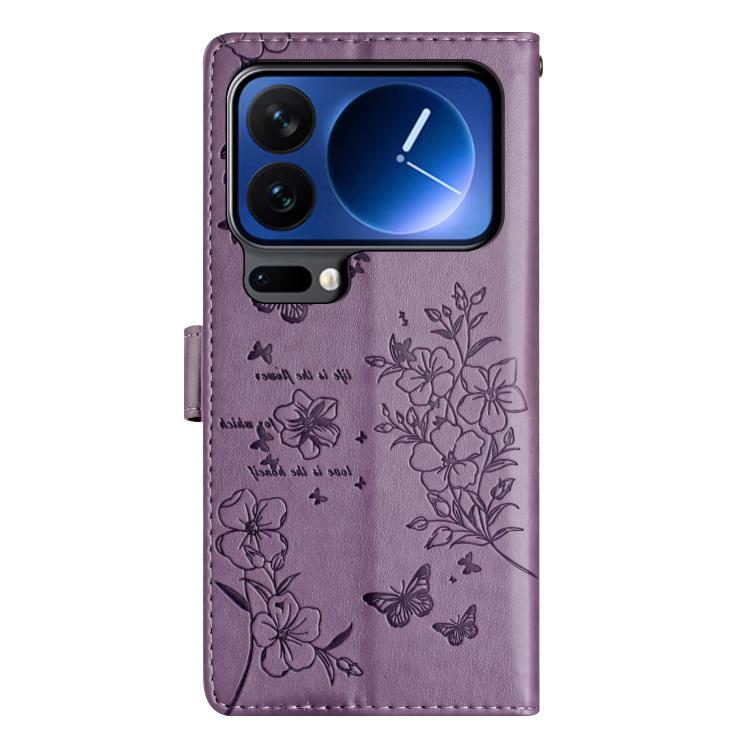 For Xiaomi 17 Pro Max Butterflies and Flowers Leather Phone Case(Purple)
