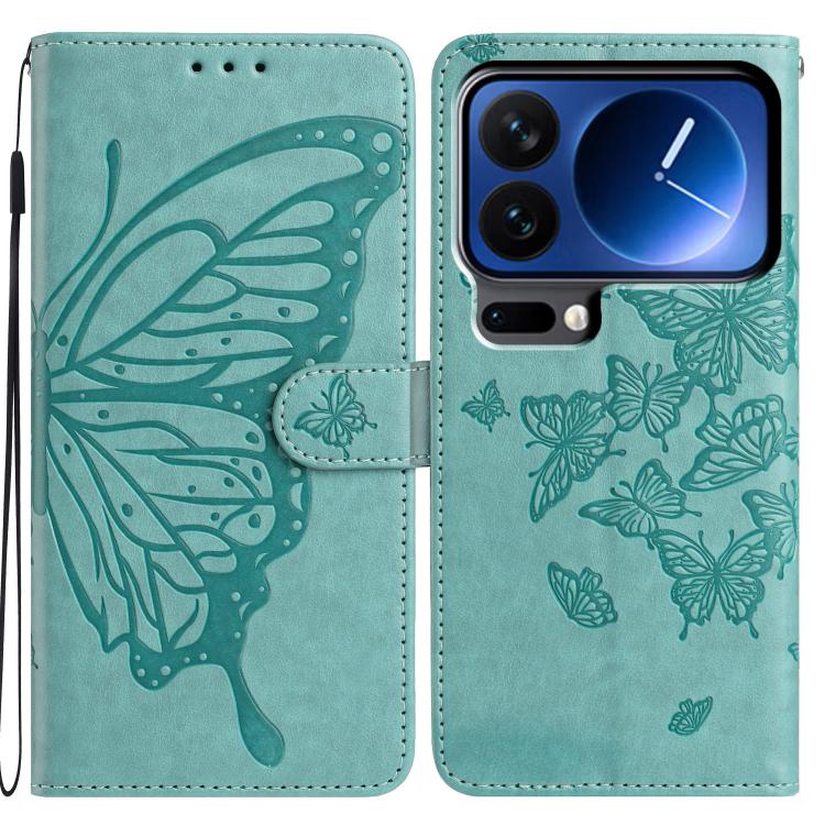 For Xiaomi 17 Pro Max Butterfly Flutter Pattern Embossed Leather Phone Case(Green)