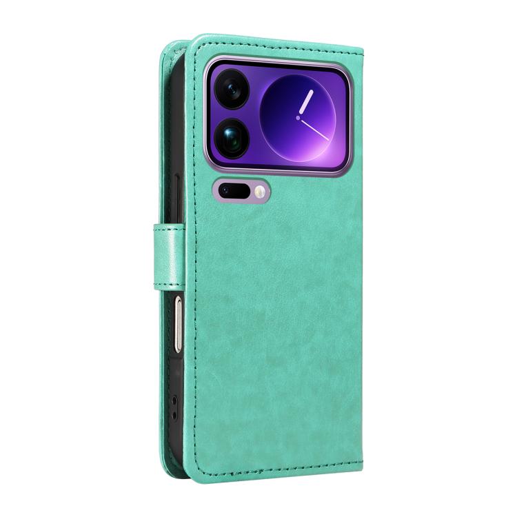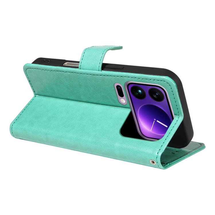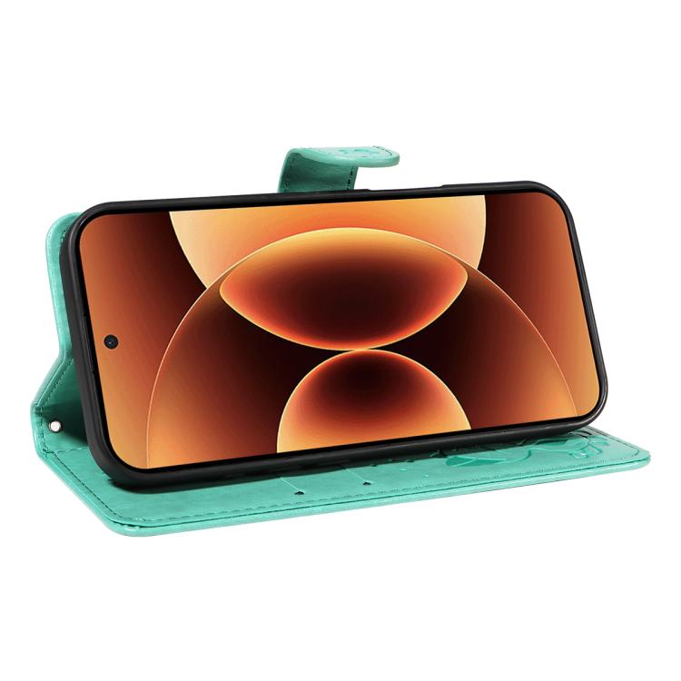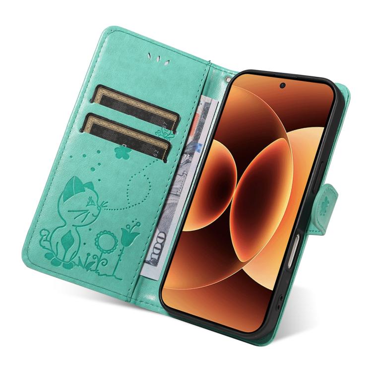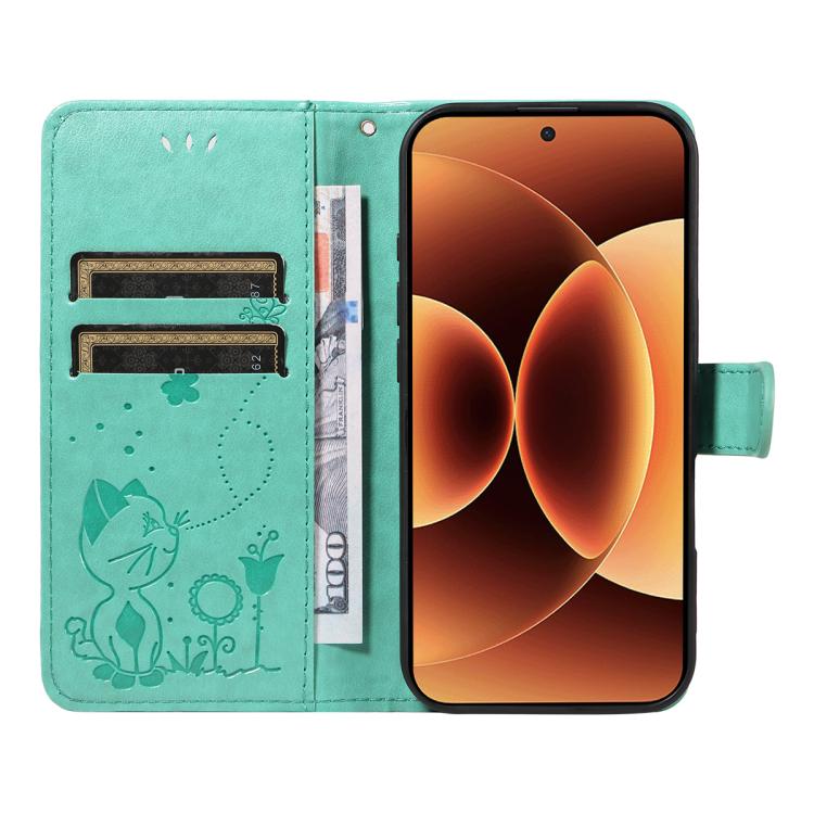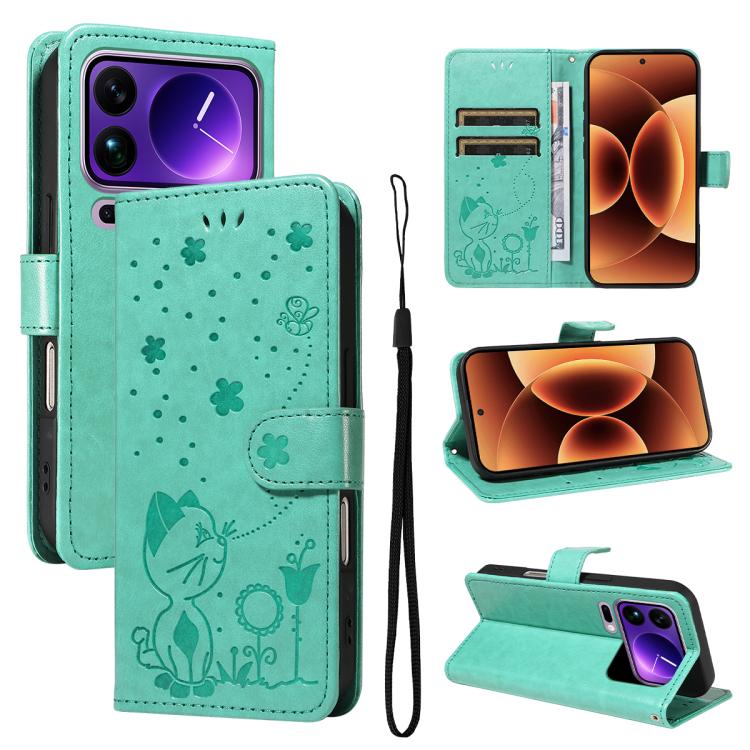 For Xiaomi 17 Pro Max Cat and Bee Embossed Flip Leather Phone Case(Green)