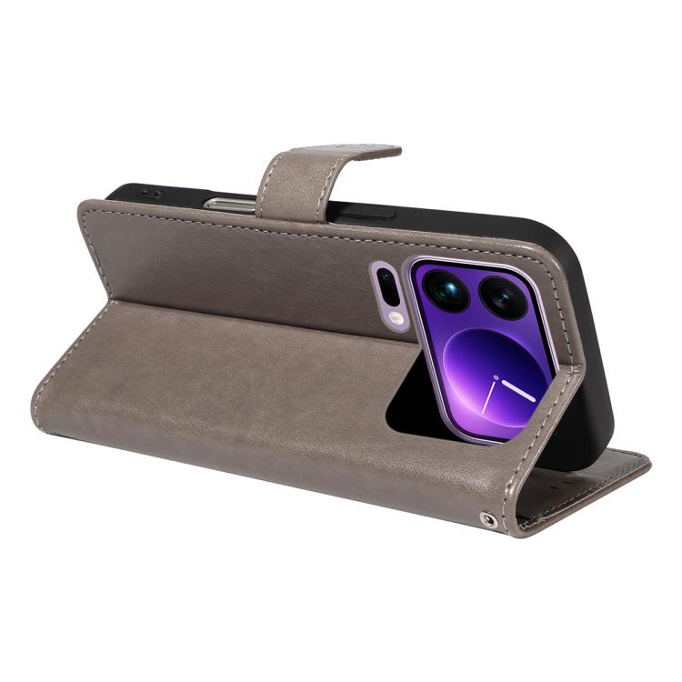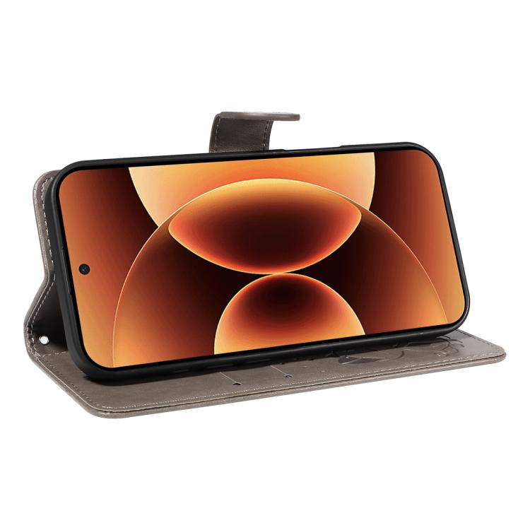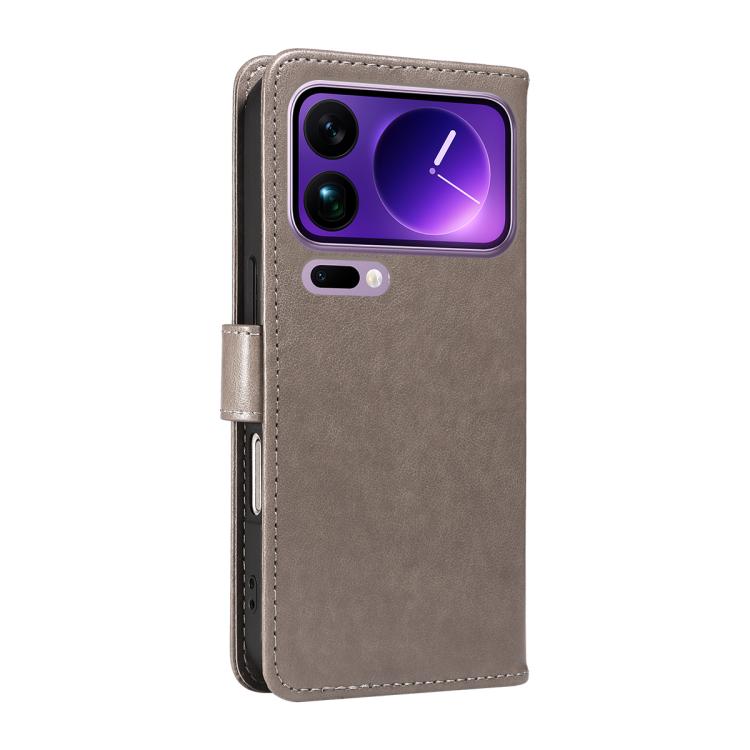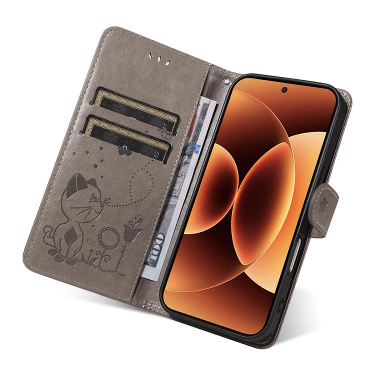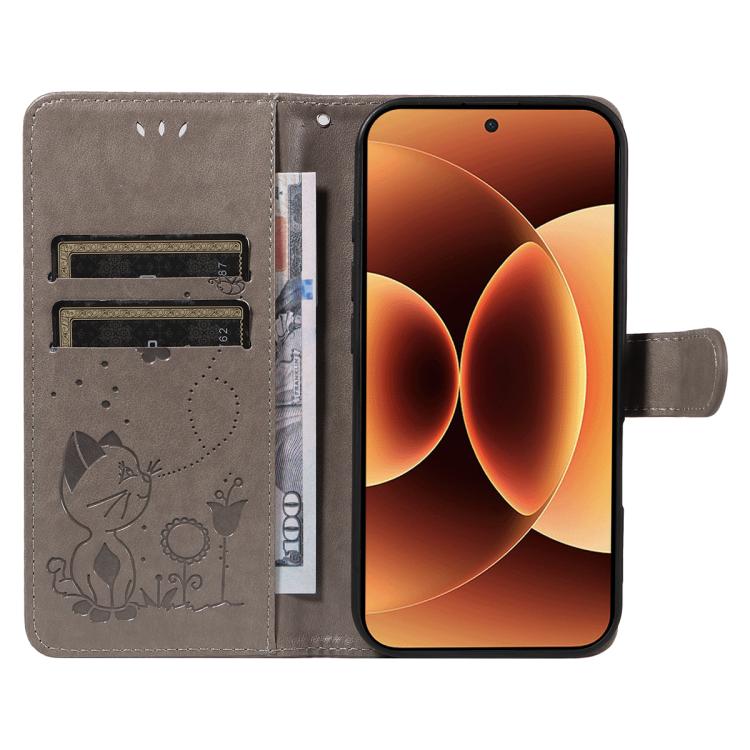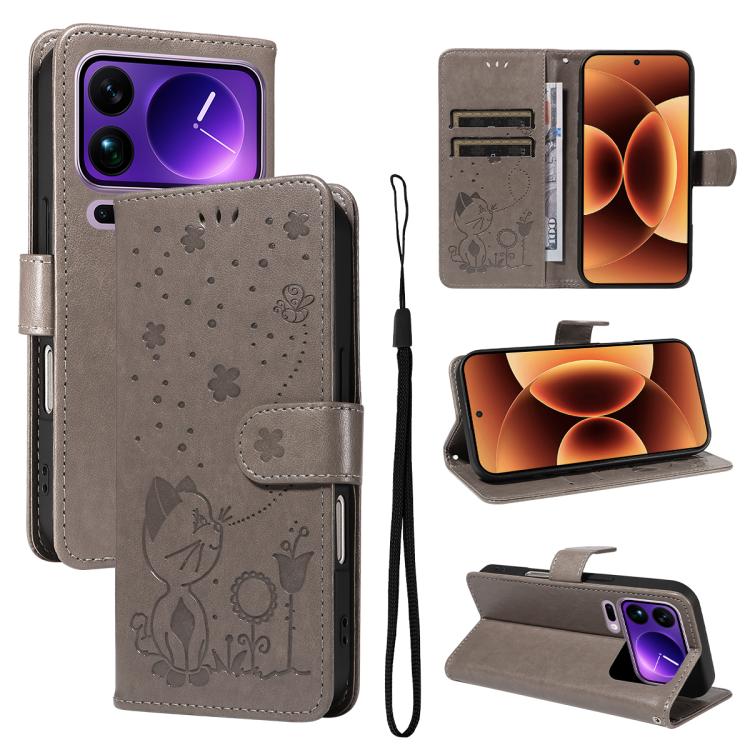 For Xiaomi 17 Pro Max Cat and Bee Embossed Flip Leather Phone Case(Grey)