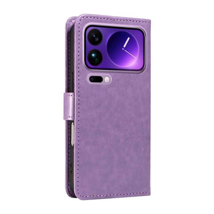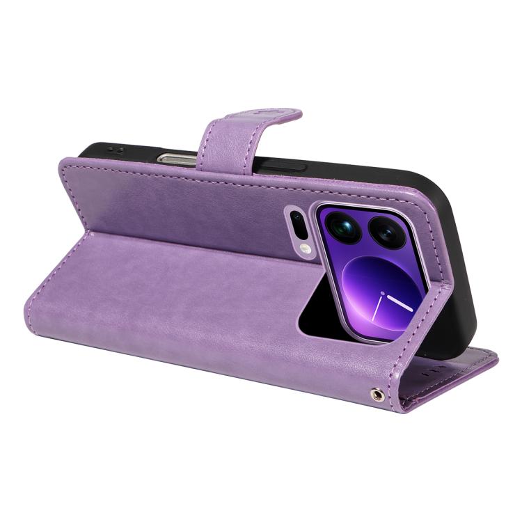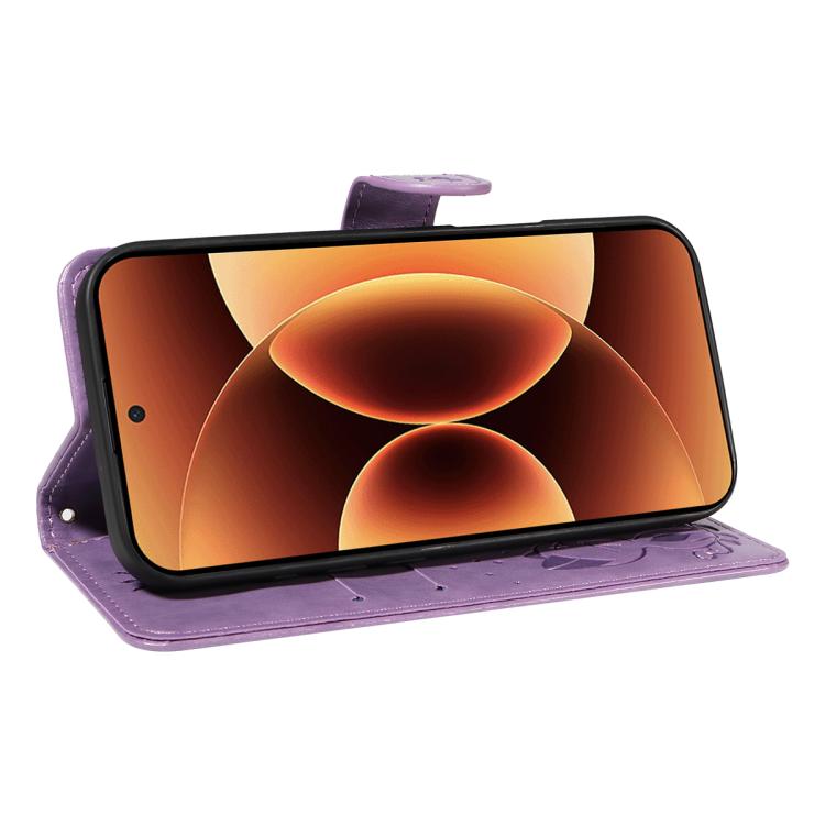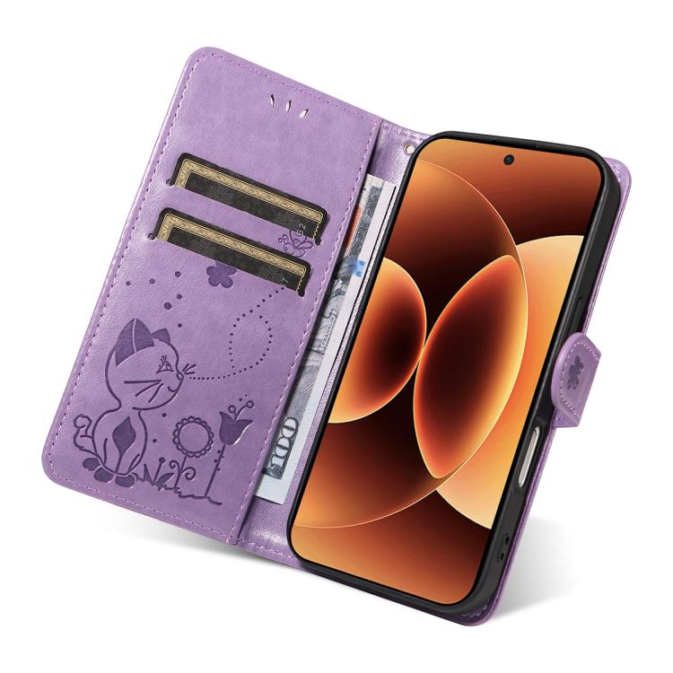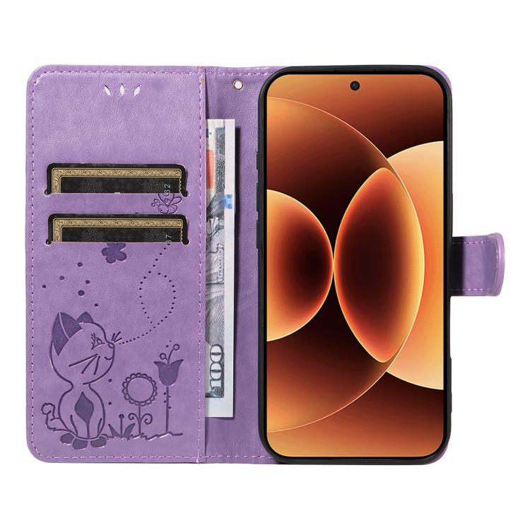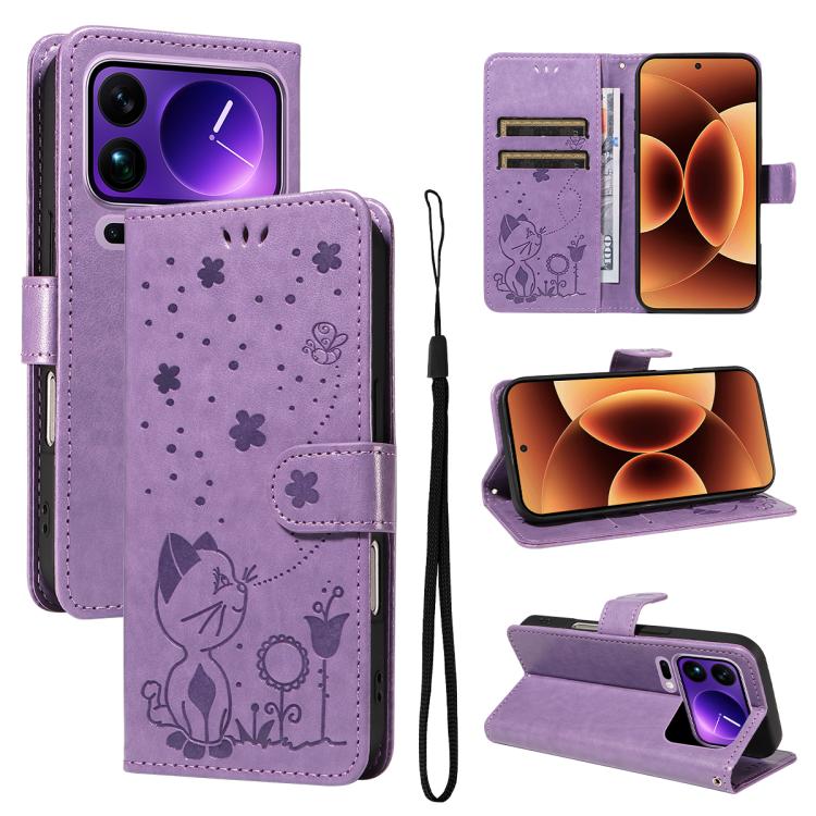 For Xiaomi 17 Pro Max Cat and Bee Embossed Flip Leather Phone Case(Purple)