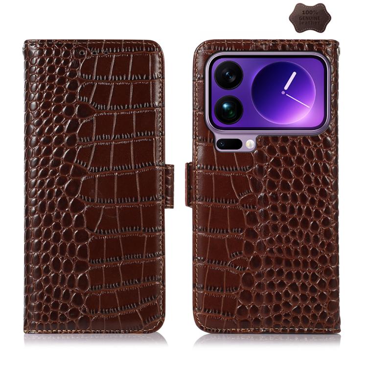 For Xiaomi 17 Pro Max Crocodile Top Layer Cowhide Leather Phone Case(Brown)