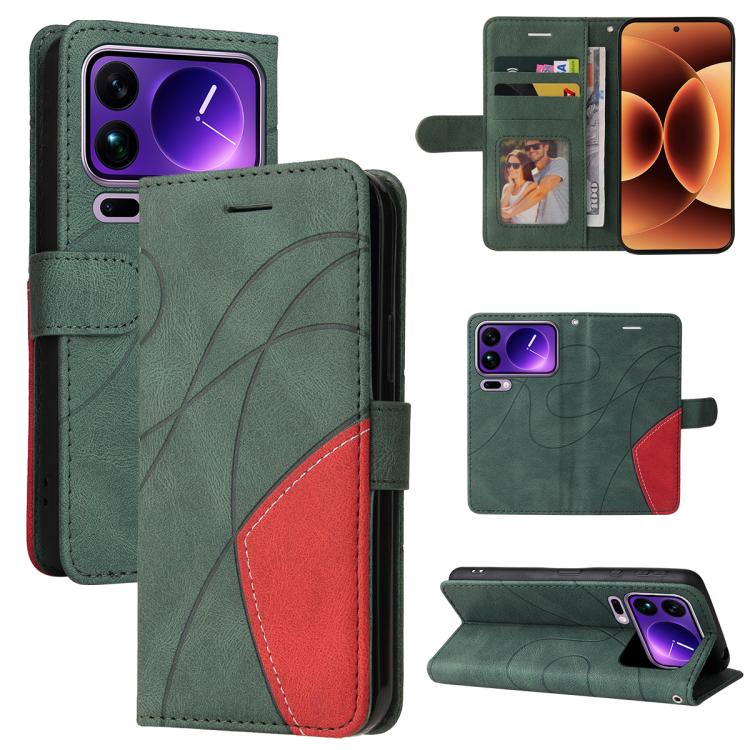 For Xiaomi 17 Pro Max Dual-color Splicing Flip Leather Phone Case(Green)
