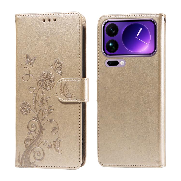For Xiaomi 17 Pro Max Embossed Butterfly Flowers Leather Phone Case(Gold)