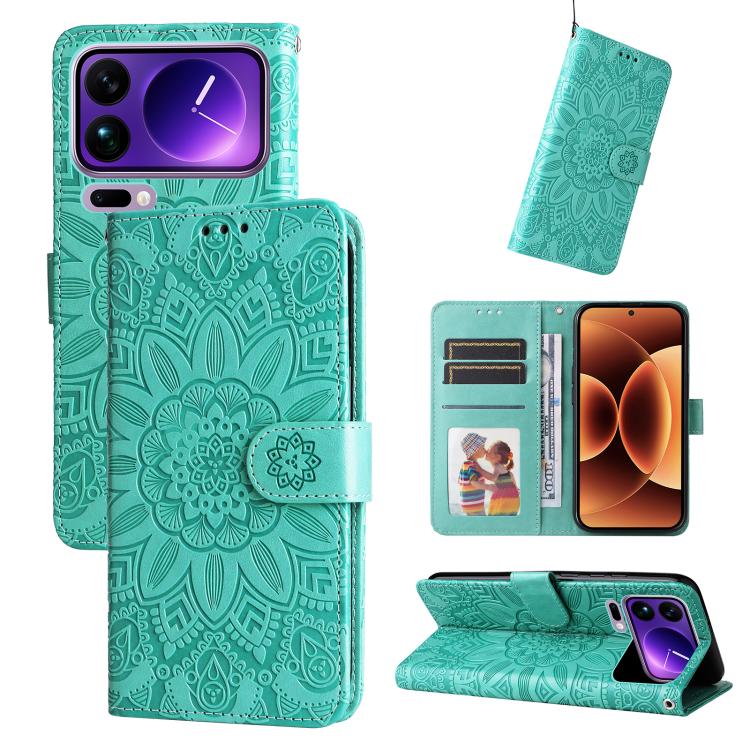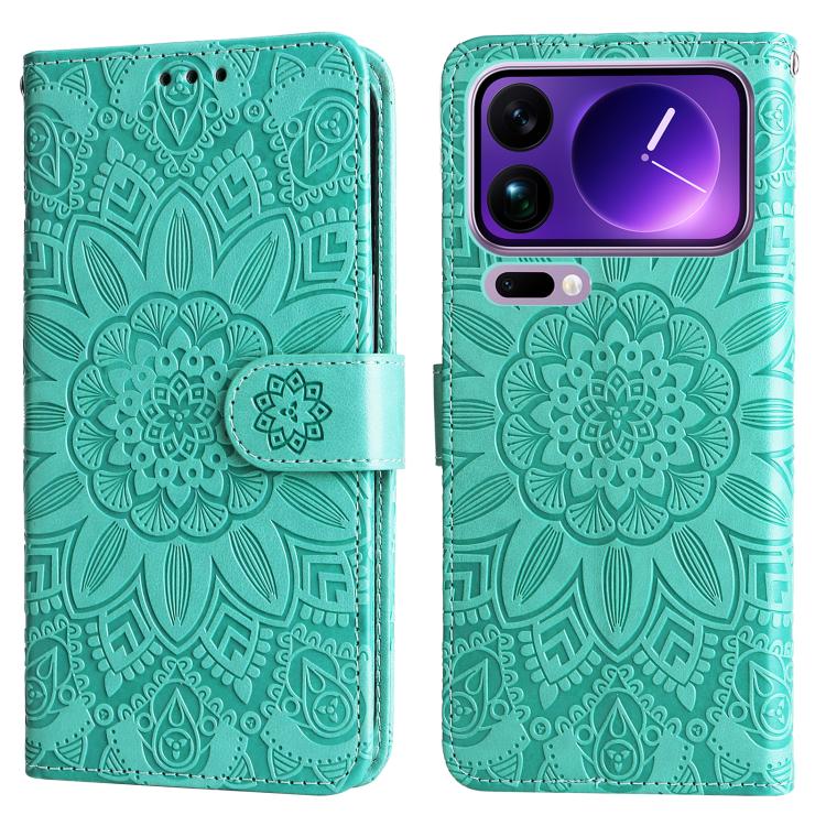 For Xiaomi 17 Pro Max Embossed Sunflower Leather Phone Case(Green)