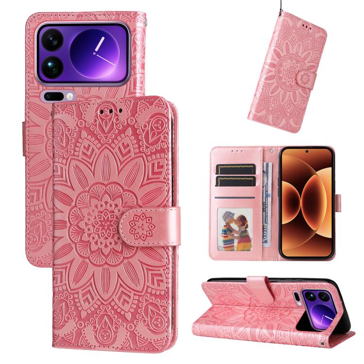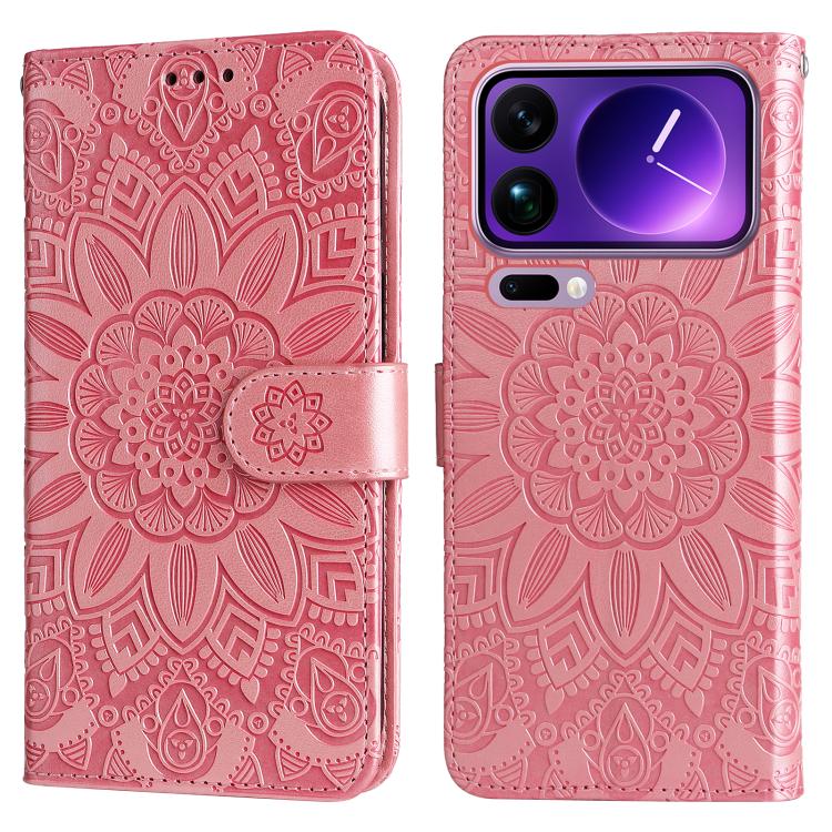 For Xiaomi 17 Pro Max Embossed Sunflower Leather Phone Case(Pink)