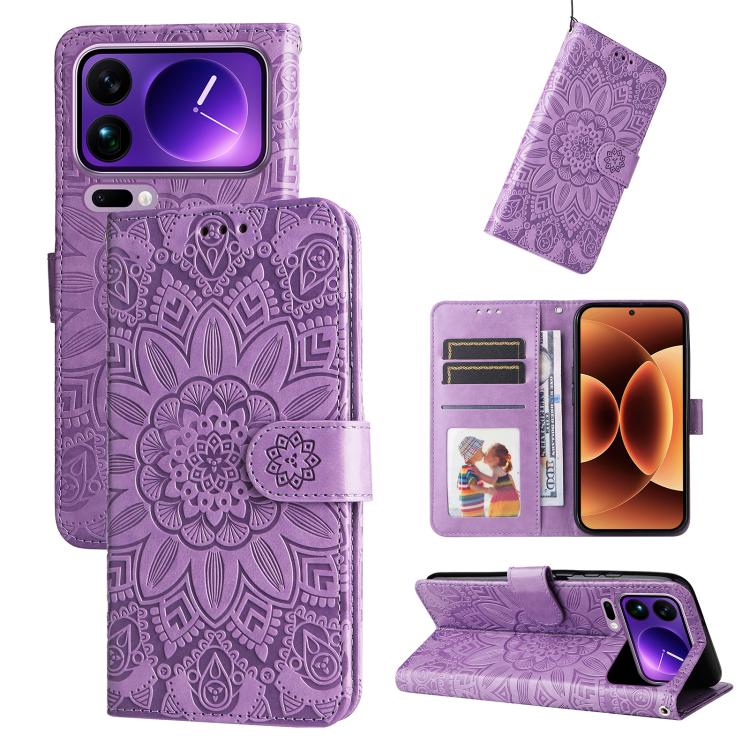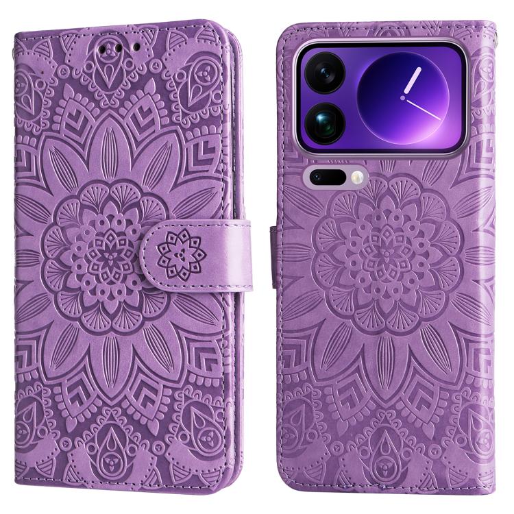 For Xiaomi 17 Pro Max Embossed Sunflower Leather Phone Case(Purple)