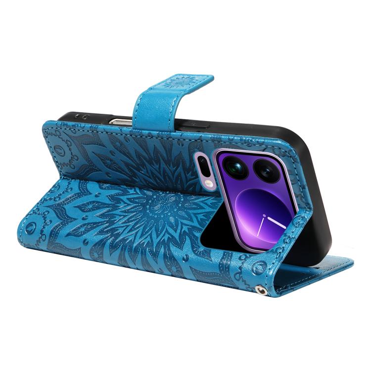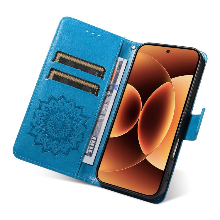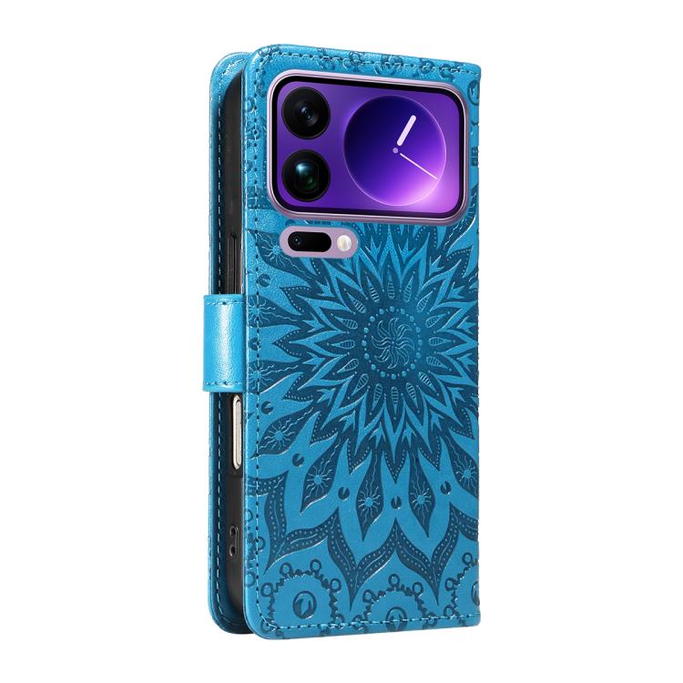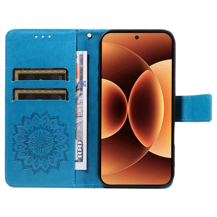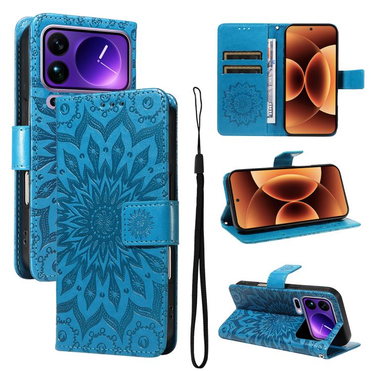 For Xiaomi 17 Pro Max Embossed Sunflower Pattern Flip Leather Phone Case(Blue)
