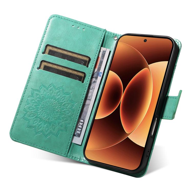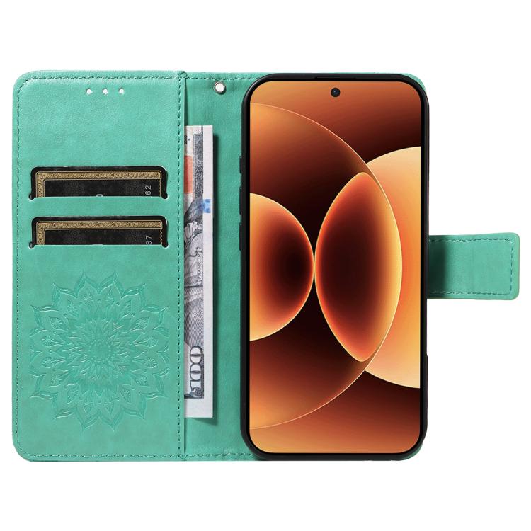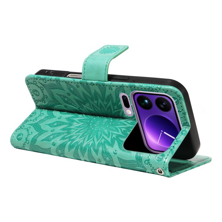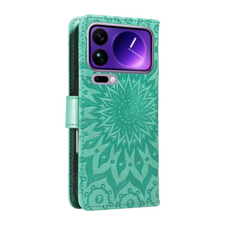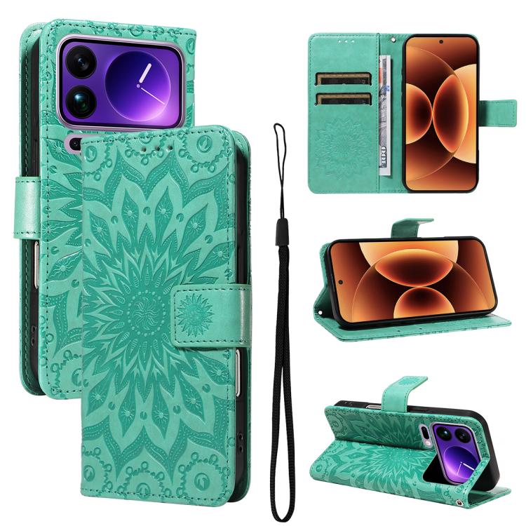 For Xiaomi 17 Pro Max Embossed Sunflower Pattern Flip Leather Phone Case(Green)