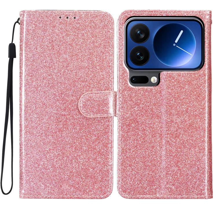 For Xiaomi 17 Pro Max Glitter Powder Flip Leather Phone Case(Rose Gold)
