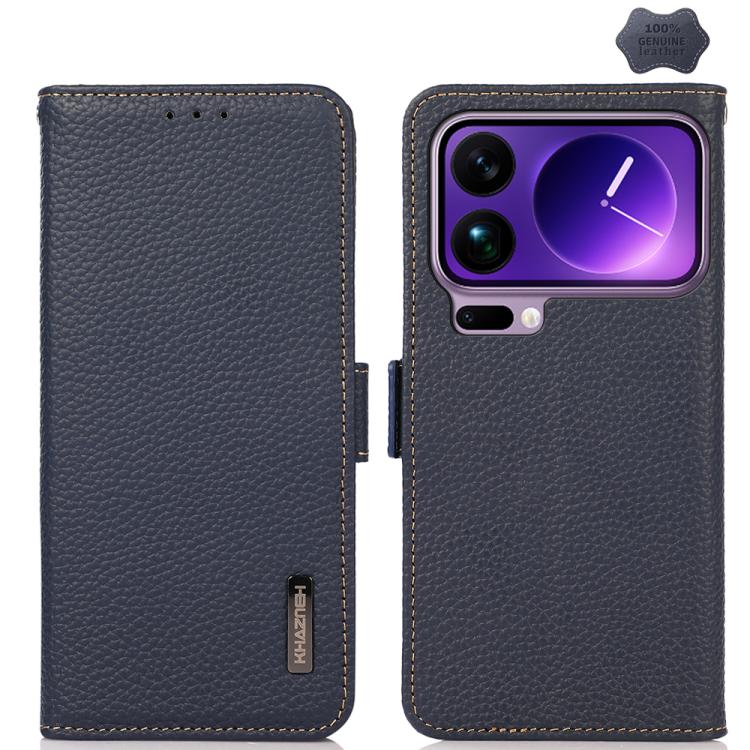 For Xiaomi 17 Pro Max KHAZNEH Side-Magnetic Litchi Genuine Leather RFID Phone Case(Blue)