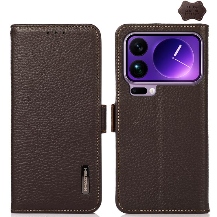 For Xiaomi 17 Pro Max KHAZNEH Side-Magnetic Litchi Genuine Leather RFID Phone Case(Brown)