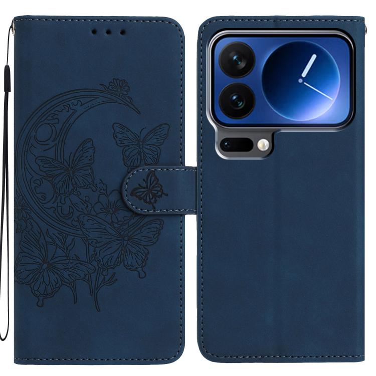 For Xiaomi 17 Pro Max Moonlit Butterfly Dance Pattern Embossed Leather Phone Case(Navy Blue)