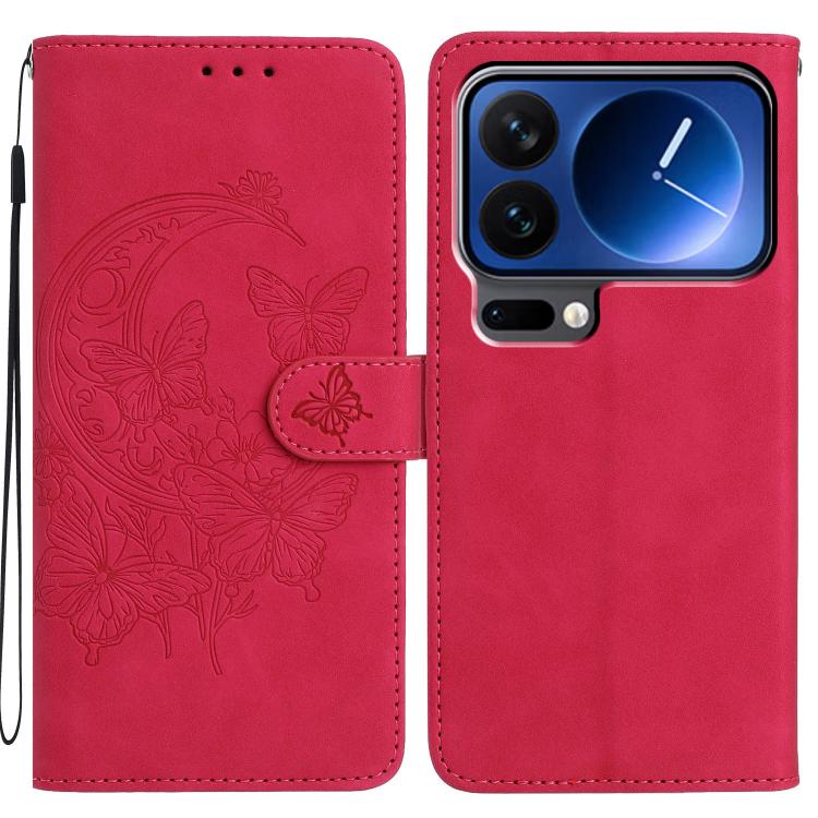 For Xiaomi 17 Pro Max Moonlit Butterfly Dance Pattern Embossed Leather Phone Case(Rose Red)
