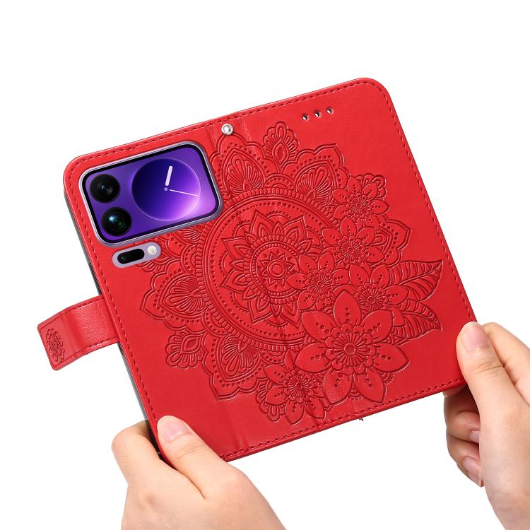 For Xiaomi 17 Pro Max Seven-petal Flowers Embossing Leather Phone Case(Red)