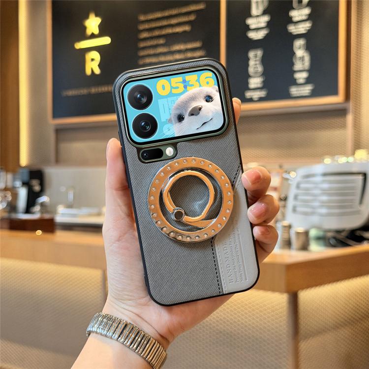 For Xiaomi 17 Pro Max Splicing Fabric Magnetic PU Back Cover Phone Case(Black)