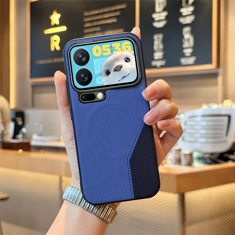 For Xiaomi 17 Pro Max Splicing Fabric Magnetic PU Back Cover Phone Case(Blue)