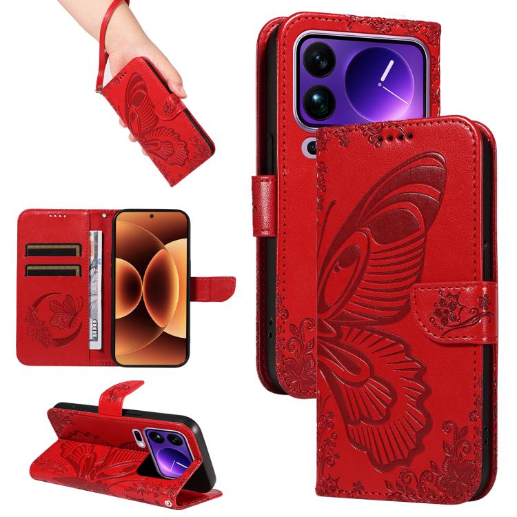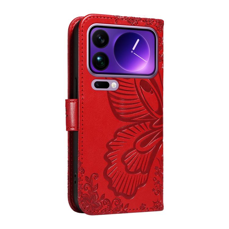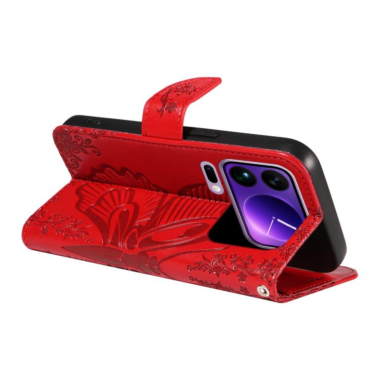 For Xiaomi 17 Pro Max Swallowtail Butterfly Embossed Leather Phone Case(Red)