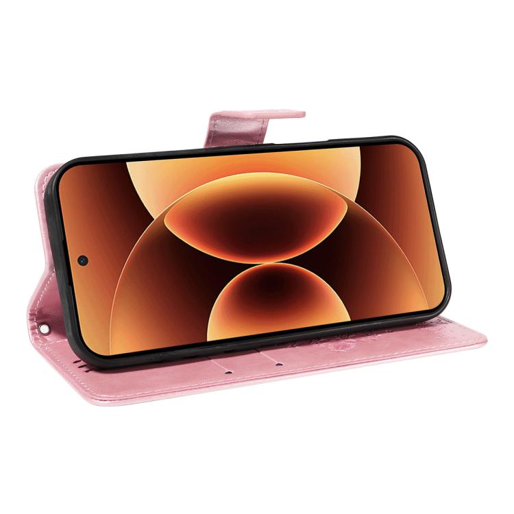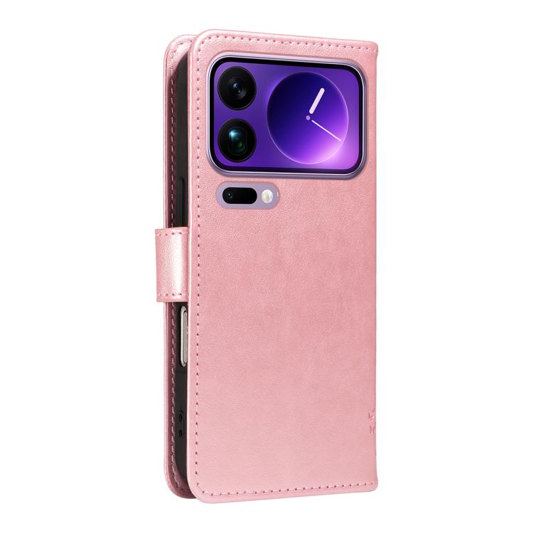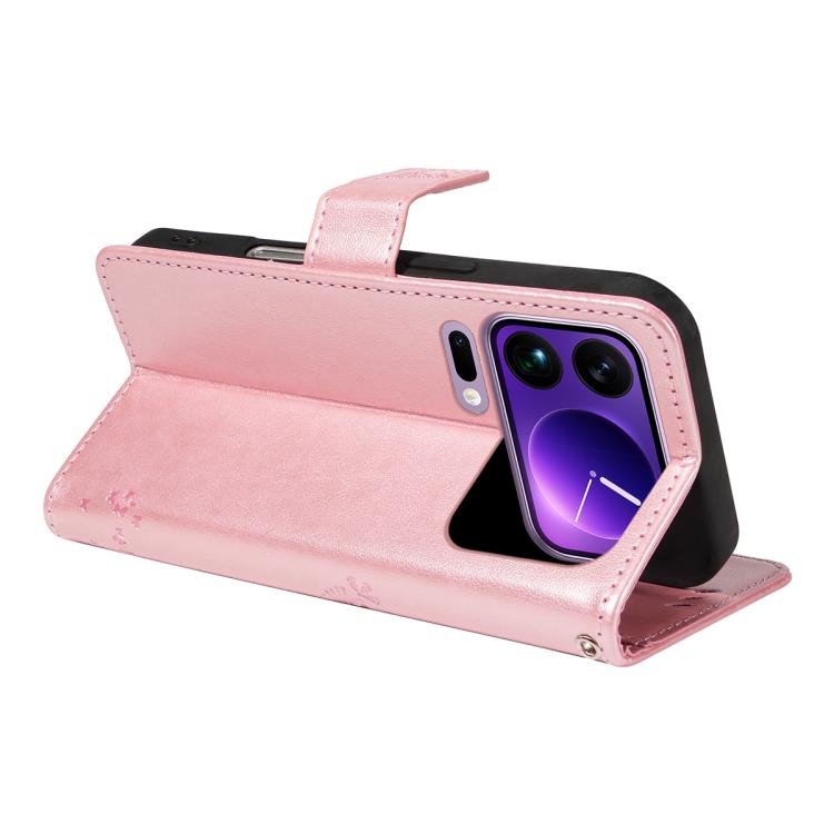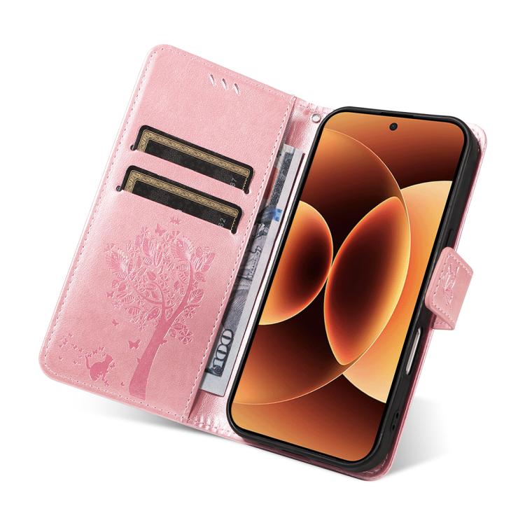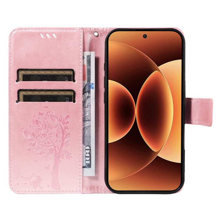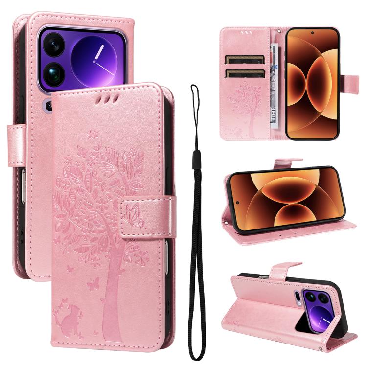 For Xiaomi 17 Pro Max Tree & Cat Embossed Pattern Flip Leather Phone Case(Rose Gold)