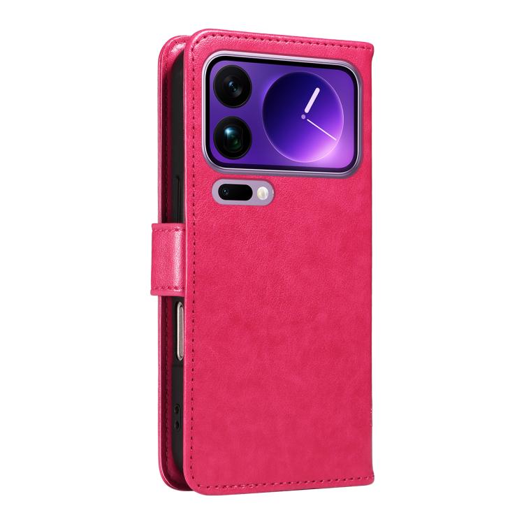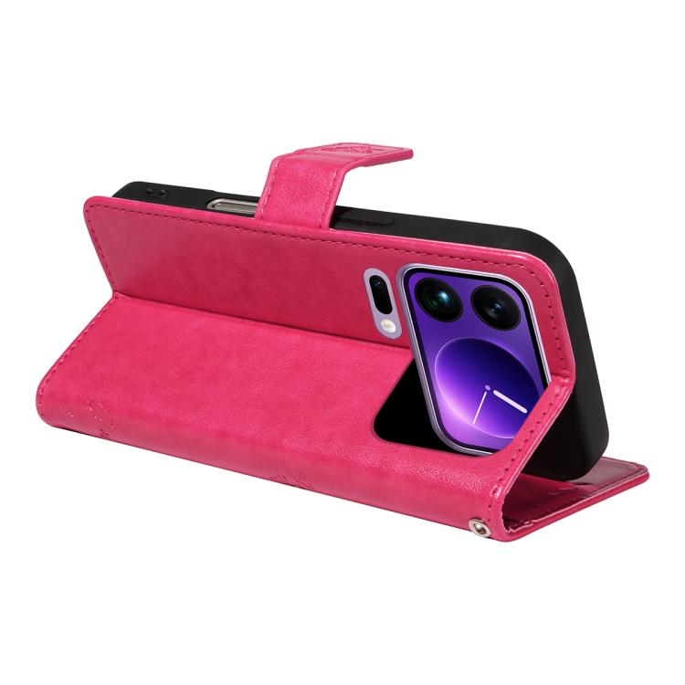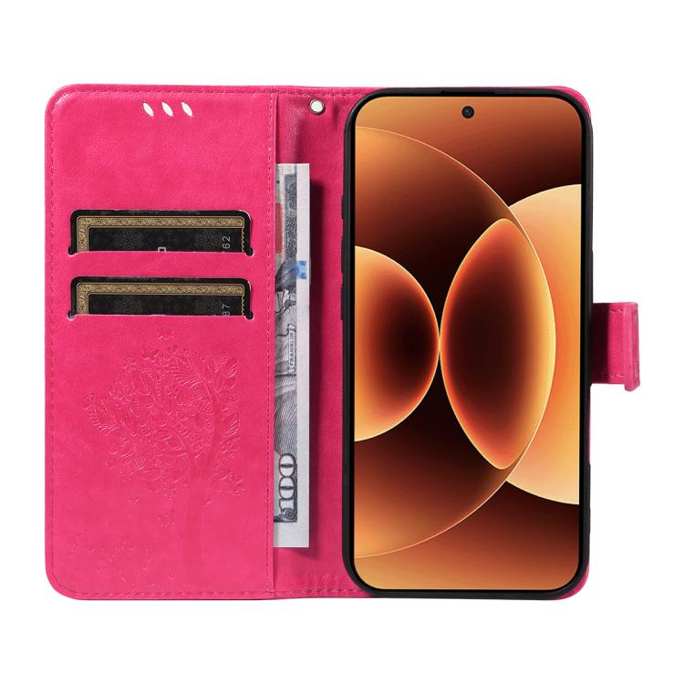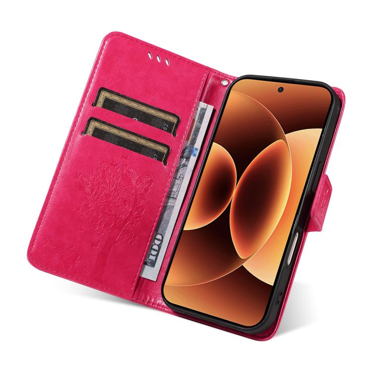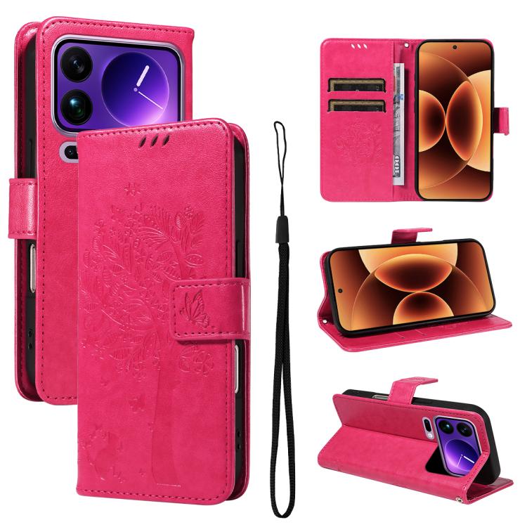 For Xiaomi 17 Pro Max Tree & Cat Embossed Pattern Flip Leather Phone Case(Rose Red)