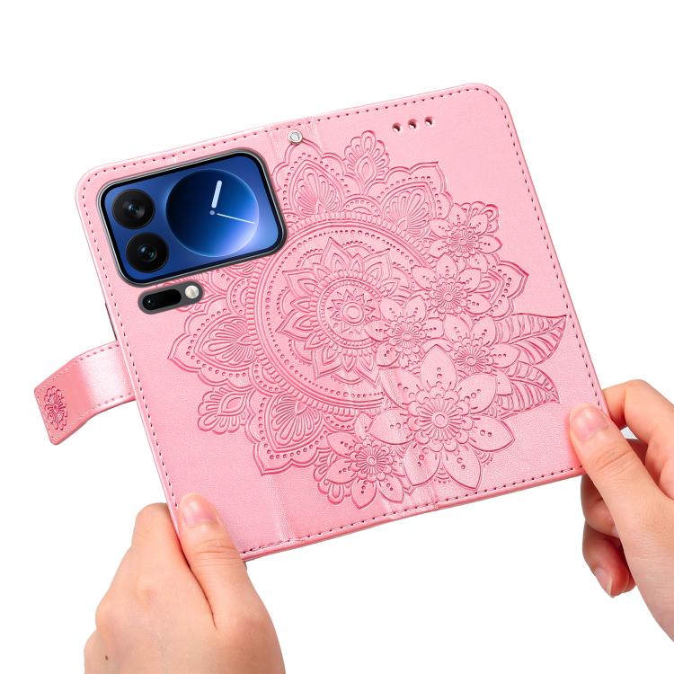 For Xiaomi 17 Pro Seven-petal Flowers Embossing Leather Phone Case(Rose Gold)