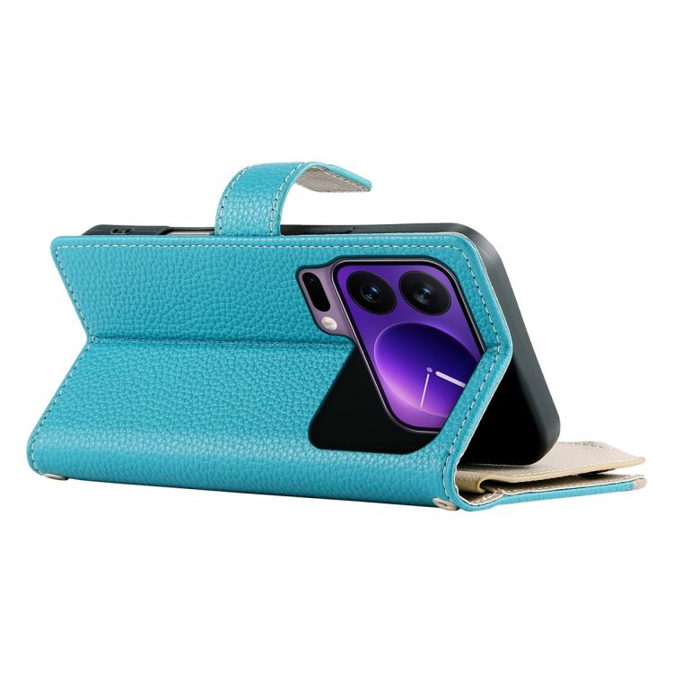 For Xiaomi 17 Pro Stitching Multi-card Zipper Wallet Leather Phone Case with Short Strap(Blue)