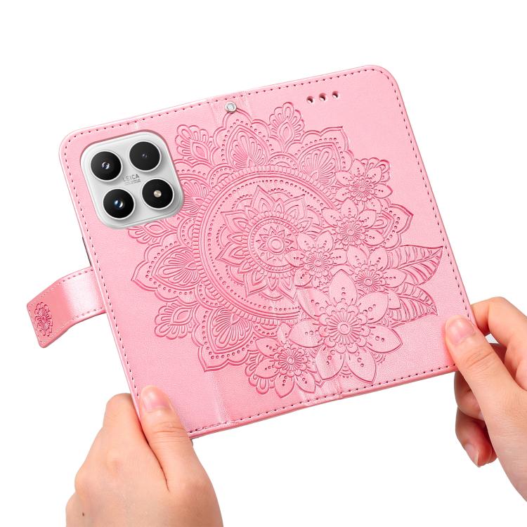 For Xiaomi 17 Seven-petal Flowers Embossing Leather Phone Case(Rose Gold)