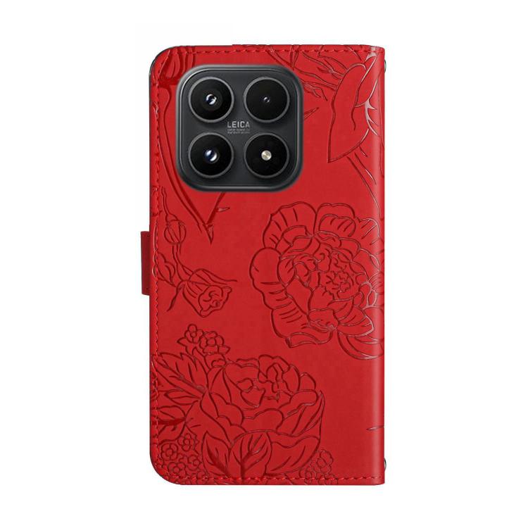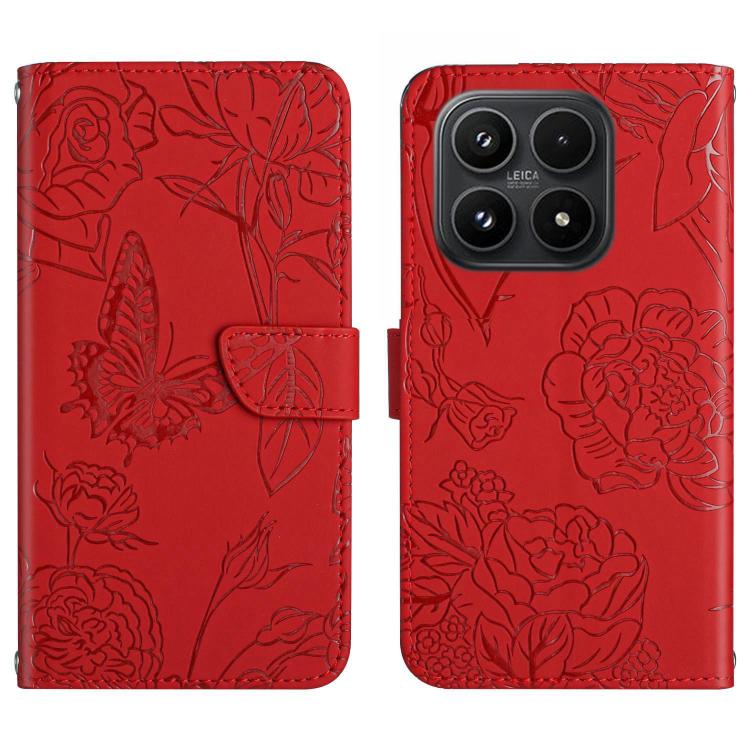 For Xiaomi 17 Skin Feel Butterfly Embossed Flip Leather Phone Case(Red)