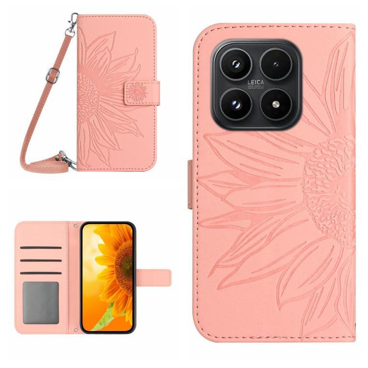 For Xiaomi 17 Skin Feel Sun Flower Embossed Flip Leather Phone Case with Lanyard(Pink)