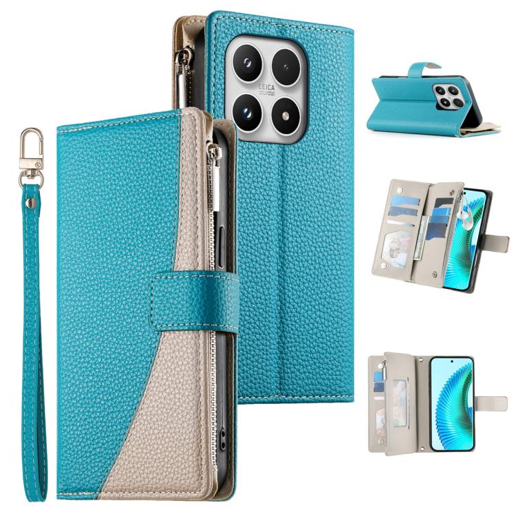 For Xiaomi 17 Stitching Multi-card Zipper Wallet Leather Phone Case with Short Strap(Blue)